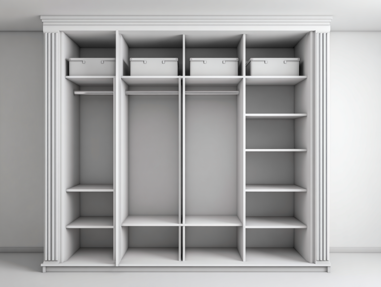 L'armoire intègre des espaces de rangement variés pour vêtements suspendus et articles pliés. La structure stable permet une utilisation quotidienne tout en optimisant l'espace vertical disponible.