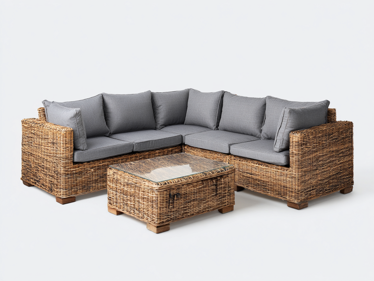 Nettoyer régulièrement la résine tressée et le plateau de la table basse avec un chiffon doux et de l'eau tiède afin de préserver l'aspect et la durabilité du mobilier.
